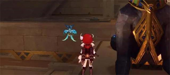 3、进入遗迹并击败敌人,跟随仙灵引导前往遗迹深处击败敌人后,调查左侧雕像的地板会发现升降机,可以前往下一层;