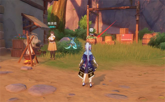 宝箱四的位置同样在清泉镇,清泉镇东边两个房子的中间。也就是曾经来交过任务的NPC布洛克后面。或者说也是慕风蘑菇生长的地方。奖励是来自布洛克的一个店铺装饰,两万摩拉以及三个烤肉排。