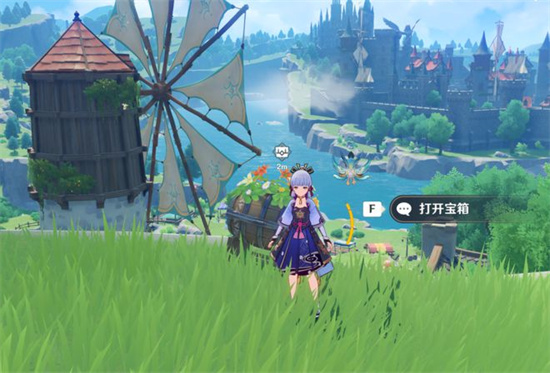宝箱一的位置在清泉镇最后一排房子后方的小悬崖上。也就是清泉镇风车的后面,爬上去之后很好找的。这是迪奥娜的宝箱,有一个店铺装饰,两万摩拉以及两个哀叙冰玉断片。